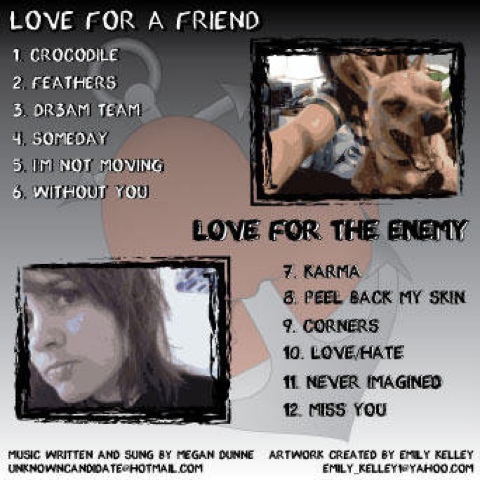 We had the pleasure of listening to New Jersey’s own “Unknown Candidate”, better known as Megan Dunne last week. Coming from Hillsborough, NJ, Megan has performed around the tri-state area doing open mic nights, to performing at different venues for shows, to now having her own release CD party. Inspired by many artist such as, Dashboard Confessional, Something Corporate, New Found Glory, and Jimmy Eat World to name a few. The self taught musician now has her debut album, “Love for a Friend, Love for the Enemy” coming out this friday November,12th 2010.